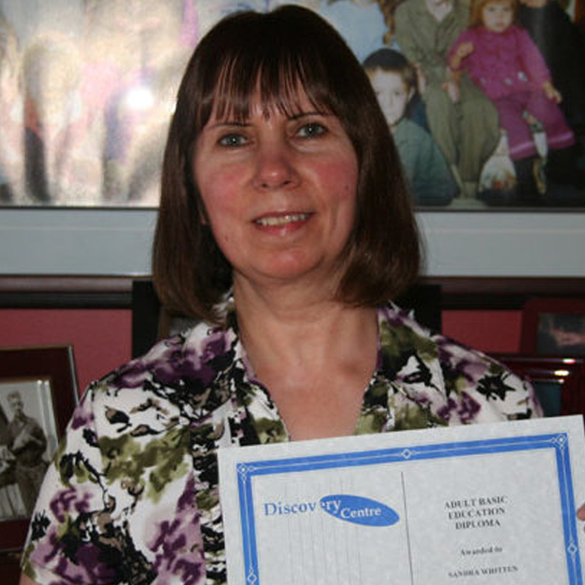 Sandra admits that going back to school in your 50s can be a nerve-wracking experience. “It took willpower, determination, and most of all, guts.” Sandra says it is never too late to return to school. “If I can do it, anyone can, so take that most important first step and open the door to your future at the Discovery Centre. The only one stopping you is you!”